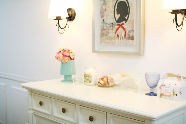 I began working as a scrapbooking teacher about three years ago in Korea and arranged this room with taste and concept for my class. It's really fit for comfort and my style. :)